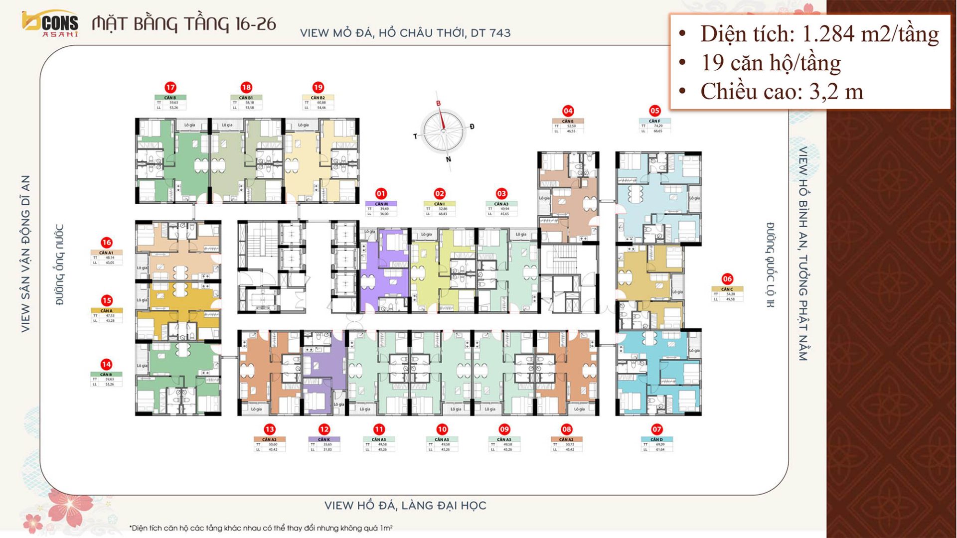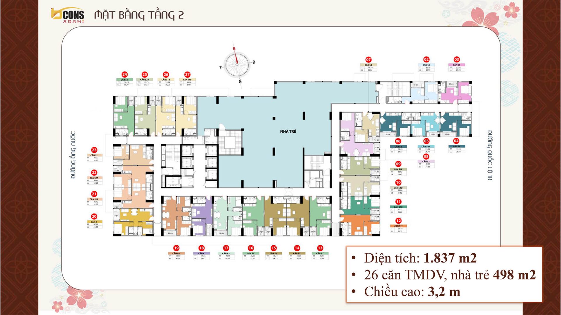 Trên khuôn viên rộng 6,031.2m2, Bcons Asahi được quy hoạch với 29 tầng nổi và 2 tầng hầm, cung ứng ra thị trường 490 căn hộ hiện đại, tối ưu công năng sử dụng.