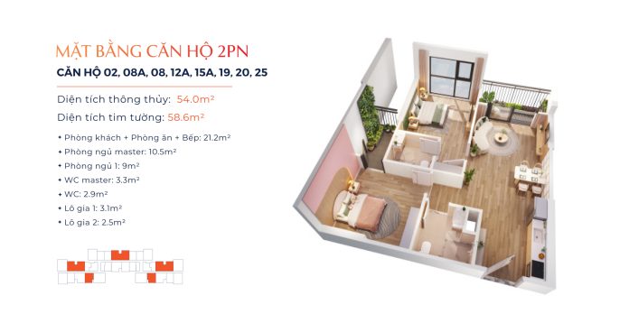 Bán căn hộ Serena Riverside 59m² – 2PN 2WC giá tốt, view sông