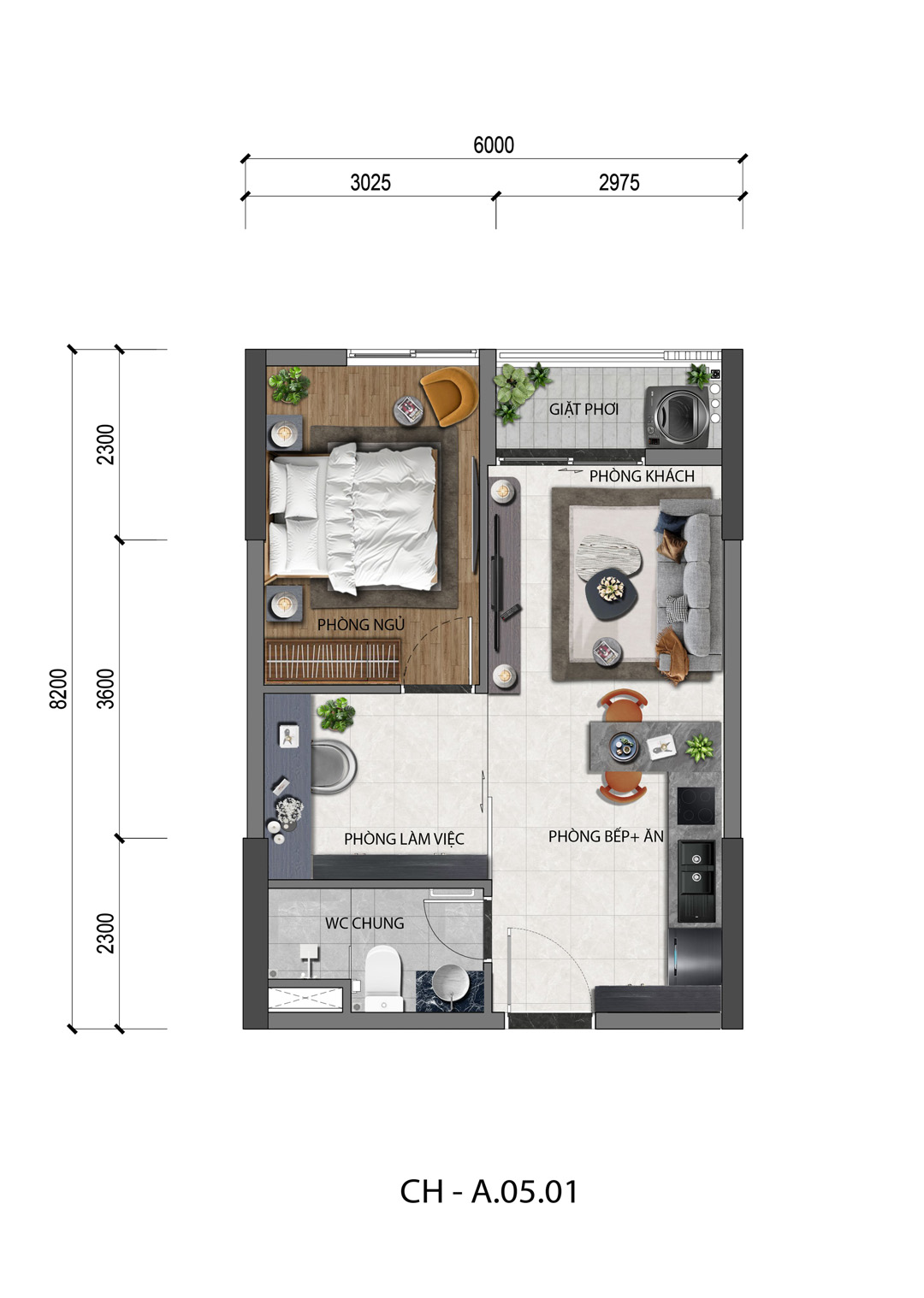 • Thiết kế: 1 phòng ngủ + 1 phòng đa năng – tối ưu không gian sống