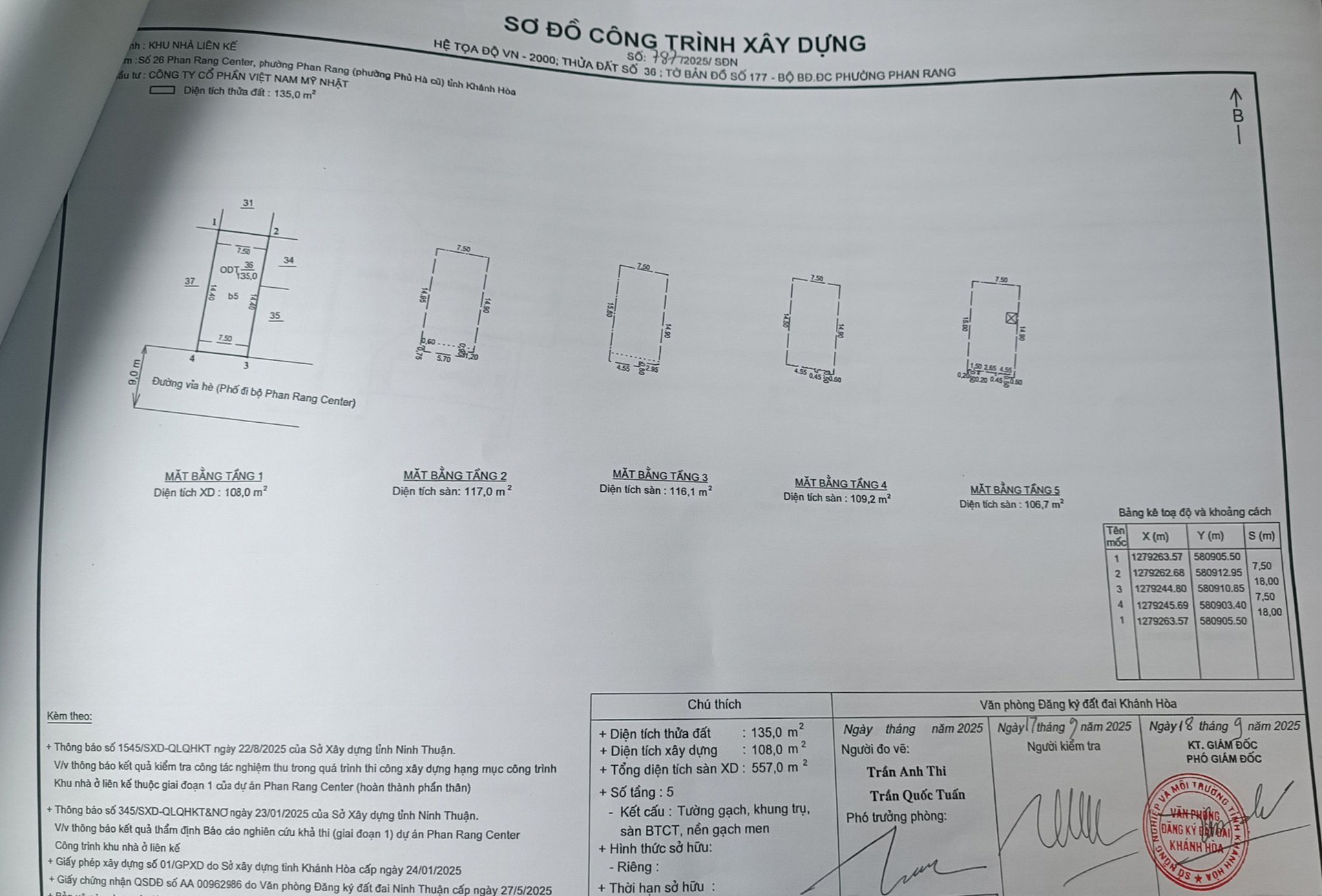 – Diện tích sàn xây dựng: 557m² (giao nhà thô, hoàn thiện mặt ngoài)